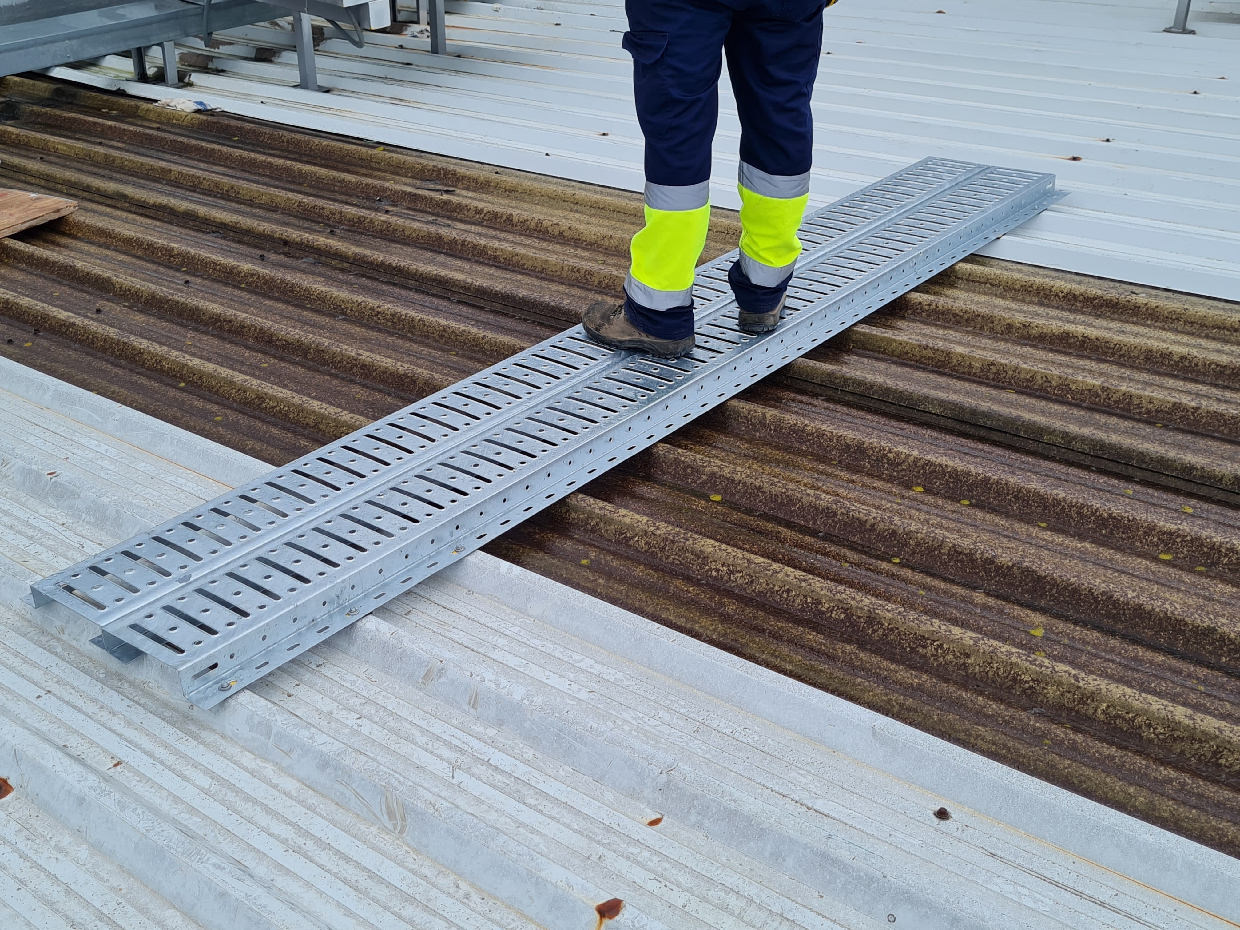 El Pasillo técnico CAREX® ofrece seguridad para poder transitar por encima de lucernarios y tragaluces. Es un producto pionero en el mercado español e internacional para cubiertas industriales. Está destinado al tránsito de personas por cubiertas que no están ideadas específicamente para caminar sobre ellas.